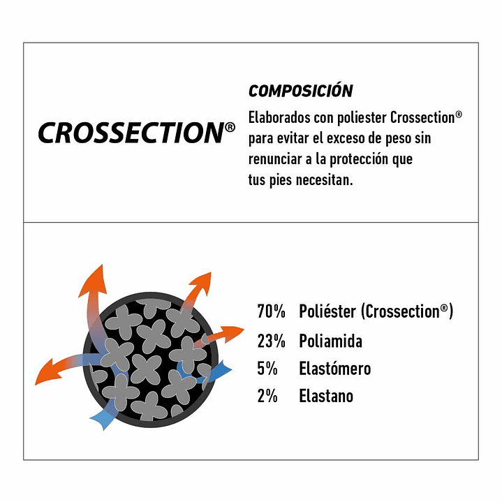 Elaborados con poliester CROSSECTION® poliéster para evitar el exceso de peso sin renunciar a la protección que sus pies necesitan.